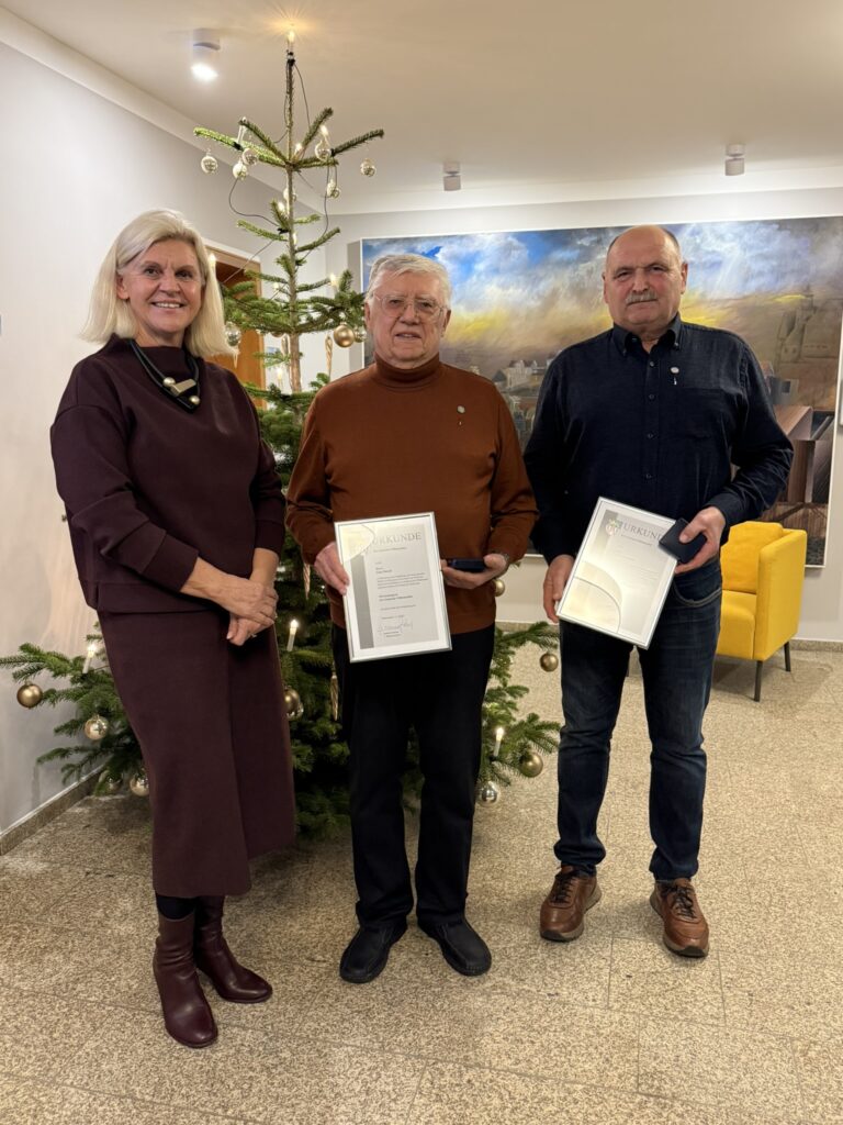 „Wir konnten in dieser Zeit viel erleben und ich möchte keinen der bisherigen 34 Einsätze missen“, sagte der Rotkreuzler. Zahlreichen Bürgern konnte dort geholfen werden, ob Kleinkinder im Kindergarten oder älteren Leuten im Altenheim. Er verwies dabei auch auf die zahlreichen bürokratischen Hürden, welche bei jedem einzelnen Transport aus dem Weg geräumt werden mussten. „Es waren letztendlich ja auch nicht nur die vierzehn Tage, welche im Jahr für die Einsätze geopfert wurden, sondern es musste drüber hinaus vieles vorbereitet werden“, sagte der Organisator. Bereits auf der Rückfahrt wurde die Planung eingeleitet und die Terminierung für den nächsten Transport vorgenommen. Der Stamm der festen Teilnehmer lag bei jedem Transport bei rund einem dutzend freiwilligen Helfern. Andreas Kübrich war während des gesamten Jahres mit seinem Auto, meist mit dem auffälligen Rot Kreuz Anhänger hinten dran, unterwegs, um alles zusammenzutragen, was die Leute in Rumänien dringend benötigen. In Rumänien selbst habe man nicht nur die Hilfsgüter verteilt, sondern auch Arbeiten in verschiedenen Einrichtungen verrichtet. So wurde das Kinder- und Altenheim mit einer Heizungsanlage ausgestattet und neue Duschen und WC Anlagen eingebaut. Gepflegt und instand gehalten wurde der vom Bayerischen Roten Kreuz errichtete Soldatenfriedhof. Andreas Kübrich erhielt dabei, wie er sagte, auch viel Unterstützung sowohl von der gesamten Bevölkerung, aber auch von Einzelpersonen und Firmen. So konnte er über viele Jahre das alte Bahnhofsgebäude nutzen, um die gesammelten Güter bis zum Verlanden der LKW`s zwischen zu lagern. „Dies war unheimlich wichtig, sonst wären die Transporte in diesem großen Stil nicht möglich gewesen, so Kübrich. Er bilanziert: Rund 600 Tonnen Hilfsgüter wurden in den vergangenen Jahren mit 28 Lastkraftwagen über die Grenzen transportiert. Allein 20 Transporte wurden durch die Firmen Hummel (Sonnefeld) und Schilling (Ebersdorf) mit gefahren, was ein unheimliches Engagement dieser Firmen darstellt. Aber auch kleinere Unternehmen waren bereit ihre Fahrzeuge für den guten Zweck unentgeltlich mit Fahrer zur Verfügung zu stellen. Firmen haben Materialien und Werkzeuge zur Verfügung gestellt, aber auch Verpackungsmaterial zur Verfügung gestellt und den Abfall entsorgt. Die Behörden haben sich eingebracht, so führte der Markt Nordhalben die Spendenkontos, das Landratsamt war bei den erforderlichen Genehmigungen ebenso wie der Zoll behilflich und die Mitarbeiter des Rot- Kreuz Kreisverbandes stellten die erforderlichen Papiere zusammen. Organisatorisch lag wahrend der vergangenen elf Jahre alles bei Andreas Kübrich, der seine Arbeit bescheiden hinten anstellt. „Insider“ wissen jedoch, dass gerade er und seine Frau Gerdi immer wieder für den guten Zweck zahlreiche ehrenamtliche Stunden investierten. So sind sie seit vielen Jahren am Nikolausmarkt und verkaufen selbst gebastelten Sachen, um die notwendigen Ausgabe decken zu können. Auch wenn die Transporte in dem großen Stil mit LKW`s jetzt eingestellt werden, so bleiben die Verbindungen zu den Menschen dort bestehen, denn der „Rotkreuzler mit Leib und Seele“ plant bereits kleinere Fahrten, um weiterhin in Rumänien Hilfe leisten zu können. mw