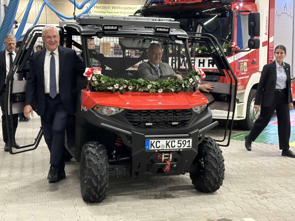 Kronach: Im Beisein des Bayerischen Innenministers Joachim Hermann wurde bei der Feuerwehr in Kronach zwei Fahrzeuge in Betrieb gesetzt. Neben den Gerätewagen Atem- und Strahlenschutz wurde das Quad UTV Transportgeländefahrzeug gesegnet. Wie der hohe Gast sagte, sei er gerne mal wieder nach Kronach gekommen, insbesondere freue er sich heute bei der Segnung der Fahrzeuge dabei sein zu dürfen.