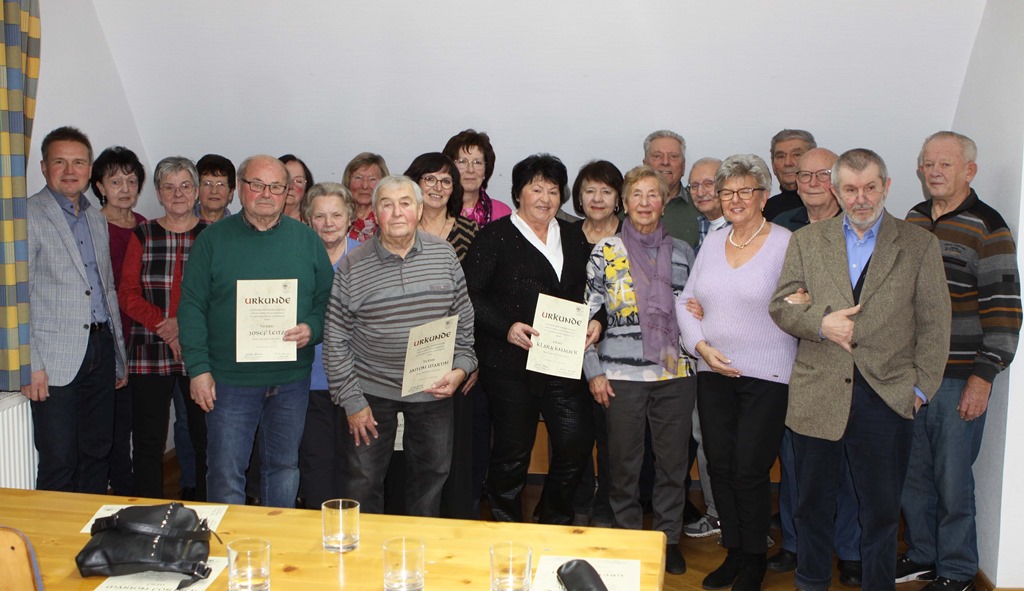Vorsitzender Gerhard Förtsch erinnerte an die drei im vergangenen Jahr verstorbenen Mitglieder Kunigunde Hofmann, Paul Hader und Josef Geier. Nachdem der Chor nicht mehr singt, bestehe das Vereinsleben lediglich aus dem gemeinschaftlichen Miteinander. So treffe man sich einmal im Jahr zur Hauptversammlung oder beglückwünsche die Mitglieder zu den runden Geburtstagen. Geehrt wurde für 25 Jahre Mitgliedschaft Stefan Raab. Bereits seit 40 Jahren halten Richilde Böhm, Carola Fiedler, Rita Förtsch, Annette Fröba, Angela Glöckl, Mathilde Grüdl, Günther Heinlein, Gretel Horn, Lothar Jungkunz, Dieter Kaschub, Dagmar Knauer, Klara Knauer, Luitgard Löffler, Brigitte Martin, Agathe Neubauer, Heidrun Schneider, Josef Schwarz, Jutta Schwarz, Christine Steffl und Gabi Weber dem Verein die Treue. Für 50 Jahre Mitgliedschaft wurde Marion Förtsch, Hans Neubauer und Anton Martin ausgezeichnet. Seit 60 Jahren sind Josef Müller, Josef Trebes, Josef Leitz, Helmut Knauer und Gerhard Förtsch Mitglied. Erwin Rebhan kann auf 70 Jahre im Gesangverein und Mathilde Horn auf 75 Jahre Mitgliedschaft zurückblicken.