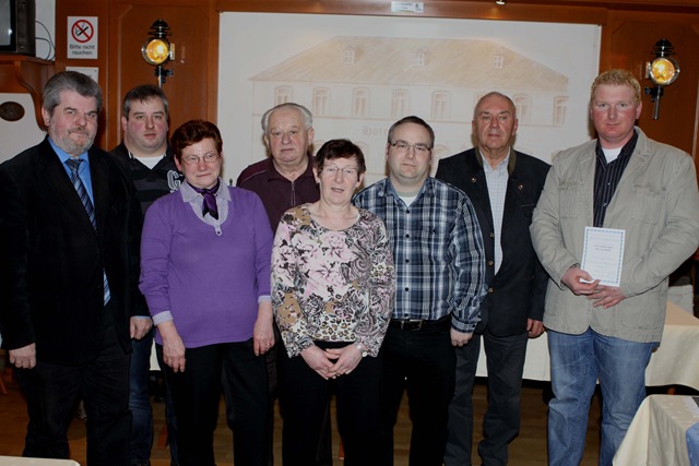 Ferdl Schultes gehört als ein langjähriger Kleintierzüchter dem Verein seit einen halben Jahrhundert an. Er erinnert sich: „Wir haben damals auf der Arbeit unter Kollegen desöfteren über die Zucht von Kleintieren gesprochen und so kam ich auch zum Verein“. Zwischen 20 und 30 Stallhasen und etwa zehn Tauben nannte der gelernte Schlosser bereits damals sein eigen. „Mich haben die Tiere und deren Haltung fasziniert, zu dieser Zeit, als die Essensauswahl nicht so groß war, wurde auch manches eigen gezüchtetes Tier verspeist“. Förmlich ins schwärmen gerät der …-jährige wenn er an die guten, „jungen Täubchen“, zubereitet von seiner als Köchin tätigen Mutter denkt. „Meine Mutter war als gelernte Köchin in Kronach tätig und hat die Spezialitäten zu Hause exzellent präsentiert. Meine Frau Marga, die sich auch mit um die Tiere kümmerte, hat die Rezepte übernommen und nach dem Tod der Mutter auch so Spitze gekocht“. Weiterhin verriet der Geehrte, dass ihm die damals aufkommenden Schauen in den benachbarten Orten imponierten. „Wir sind oft im Winter mit den Motorrädern raus gefahren und haben die Lokal- und Kreisschauen besucht. Meist waren dies für die damalige Zeit große Feste, dabei wurden auch fast immer ein Rind und Schweine geschlachtet. Die sich anschließenden Schlachtfeste bleiben immer in Erinnerung“, sagte Ferdl Schultes. Daheim musste neben der hauptberuflichen Arbeit als Schlosser auch das Futter für die Tiere beschafft werden. „Ich bin oft mit dem Moped mit Anhänger zum Buckenberg gefahren, habe mit der Hand Gras gemäht und dieses dann für die Tiere nach Hause gebracht“, so Schultes. Im Verein war der langjährige Kommandant der Freiwilligen Feuerwehr auch als Zuchtbuchführer und Kassenprüfer tätig. Um später weitere Anreize für die örtlichen Lokalschauen zu schaffen, regte der Geehrte Losbuden an. Mehr als 30 Jahre organisierte er für den Kleintierzuchtverein Nordhalben bei der Lokalschau die Tombola, welche auch etliches an Geld in die Vereinskasse brachte. Vorsitzender Jörg Neubauer bezeichnete deshalb dem Ausgezeichneten als Beispielgebend für Jung und Alt.