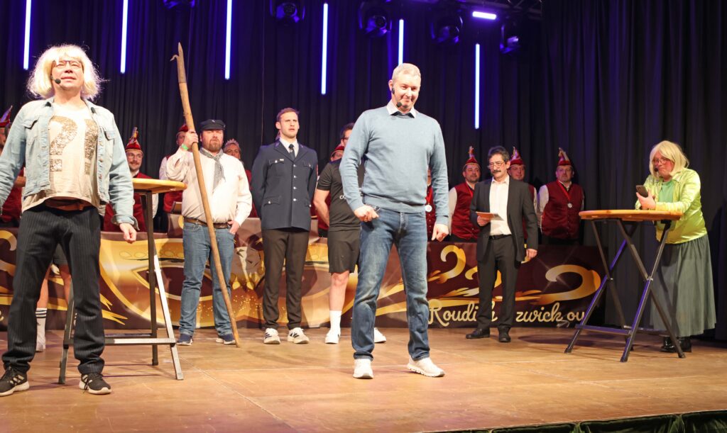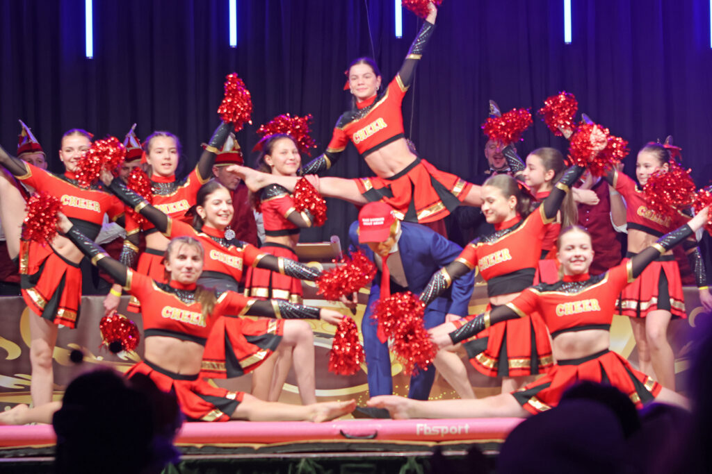 Marktrodach: Deftiges aus der Kommunalpolitik, zahlreiche Tanzauftritte und Gastauftritte waren beim 3. Roudicher Büttenabend angesagt. Als Ehrengast fand sich zur Vorstellung der „Marke Roudich great again“ auch der Amerikanische Präsident Donald Trump den Weg in die Rodachtalhalle. Die Zusage gab es, nachdem Teuschnitz zu weit weg von Amerika, Wallenfels nicht suspect sei und Neufick ein besonderer Graus sei, weil dort jede Garag größer ist als das White Hause. Er findet Katja Wich Beautiful, statt Thomas Hümmrich hätte er lieber seine Frau gesehen, denn she is tafff! Er versprach ein grate Building zu bauen. Dies könnte das Trump-Hotel am Radspitz-Tower sein. Vorgestellt wurde die neue Rodiche Nationalhymne, von den Flößermusikanten unter der Leitung von Walter Wich-Herrlein. „Roudich Zwick ou“ tönte es von fern und nah, als das Rodiche Prinzenpaar die Bühne betrat. Dabei hieß es, ob Schere oder Gaspedal, gemeinsam sind Danila I und Thomas I unschlagbar. Papa Frankonia wusste vieles vorzutragen. Dazu zählte auch der Winterwahlkampf, wo Katja alte Zöpfe abschneiden will und der bürgernahe Thomas ein offenes Ohr für jeden findet. Ab der kommenden Wahlperiode wird sicherlich der heldenhafte Mut des kleinen „Nobileins“ vermisst. Einen Härtetest mussten sich die beiden Kandidaten auch im Wahlkampfstudio in der „Galerie an der Rodach“ stellen. Dabei wurde deutlich, dass die Katja leutseliger als der Norbert Grabner und gleichzeitig härter als dessen Vorgänger Siegfried Haderlein sei. Matthias Herrmann (Potensteiner) meinte, dass das „kleine Übel“ nach 30 Jahren Pflichterfüllung das Rathaus verlässt. Die Frage sei, ob die „Weißhemdenfraktion“ mit dem blonden Fallbeil oder der erfahrene Silberlocke die Nachfolge antritt. Neben den heimischen Garden waren auch die Nachbarn aus Steinwiesen mit ihrer Prinzengarde vertreten. Das pure Wahlkampfleben zeigte die Alt Ur Schnaade Feuerweh Kapälln auf. Gekonnt führten Martin Fleischmann und Sitzungspräsident Martin Müller durchs Programm.