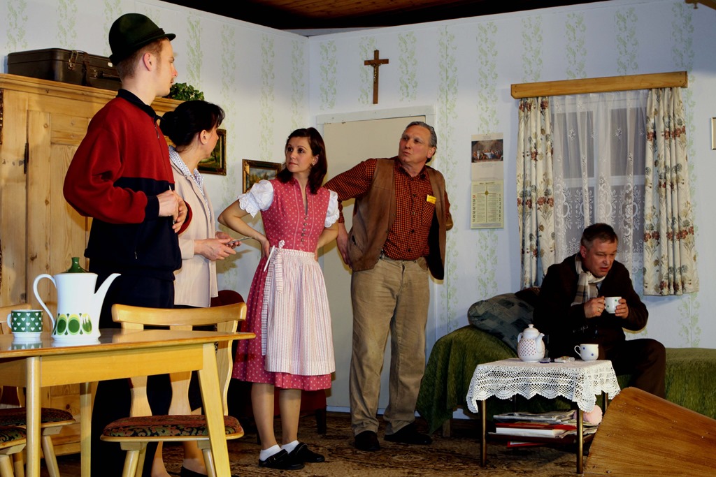Das Rätsel um den Spuk und die Hexerei des guten Stückes in der Wohnstube des Wirts war schnell gelüftet, aber mit der Aufklärung sollte es bis zum Ende des Lustspiels dauern; schließlich wollte der Wirt Werner Pielmeier (Holger Brehm) der Familie und den Bekannten die Freude nicht verderben. Der Wirt machte als eingebildeter Kranker mit seinen Nachbarn Robert Rossmann (Rüdiger Walter) einiges gesundheitlich durch und brachte sowohl seine Frau Karin (Kerstin Braunersreuther) als auch seinen Vater Richard (Franz Spindler) zur schieren Verzweiflung. „Des prügel Mannsbild is a richtiger Waschlappen. Mei arma Schwiegertochter hät a wos bessers verdient als mein Gunga“, meinte der Vater. Der Sohn sah es natürlich aus einem anderen Blickwinkel, denn schließlich sei sein Nachbar Robert der einzige der seine Beschwerden ernst nehme und mit ihm leide. Sein Vater und seine Frau gönnten ihm nicht einmal das Kranksein. Die Kopfschmerzen, welche vielerlei Ursachen haben können, werden beim Wirt und seinen Nachbarn Robert noch schlimmer, als dieser erfährt, dass die Tante Emma Haller (Marianne Hannweber) seiner Frau Birgit (Silke Merbach) für sechs Wochen zu Besuch kommt. Regelmäßige Krankenbesuche statten den beiden eingebildeten Kranken auch die Stammgäste Harald (Harald Gremer), Charly (Alexander Löffler) und Gustav (Lukas Brehm) ab. Die Magd Elli (Diana Schütz) macht ihre Pausen regelmäßig mit einer Flasche Bier im Schrank. Als sie wieder mal mit einer Flasche Bier im Schrank verschwindet und man sie bei der anschließende Suche nicht findet, kommen erste Zweifel am alten Holzschrank auf. Auch der Handwerker Jochen (Klaus Drechsel) kann zunächst nichts Auffälliges feststellen. Als dann auch noch sein Vater Richard winkend im Schrank steht, drehen der hypochondrisch veranlagte Wirt und sein bereitwillig mitleidender Freund Robert fast durch. Literweise Kamillentee und kalte Umschläge sollen die beiden, die es mittlerweile auch im Magen und den Ohren haben, wieder kurieren. Aber genau das Gegenteil ist zunächst der Fall; sowohl beim Wirt als auch bei seinen Nachbarn Robert artet das Kranksein in Stress aus. Sie können sich auf die verschiedenen Krankheiten kaum mehr konzentrieren. Während die Frau des Wirts ihr „Schnurzelbärchen“ bestens pflegt, gibt die Bedienung Silke (Janine Brehm) den Stammgästen eine Runde Schnaps aus, damit der Wirt wieder gesund wird. Im personendurchlässigen Schrank mit Hintertür zum Flur geht es derweilen munter zu; einige gehen, andere kommen völlig überraschend wieder zurück. Schier zur Verzweiflung bringt den Wirt auch die Magd Elli, die immer einen guten Durst mitbringt. „Die Magd is nuch amol mei Untergang“, meinte dieser als sie wieder mal mit der Bierflasche aus dem Schrank steigt. „Ich bin nett so krank, dass ich im Wirtshaus gepflegt werden muss“, sagte die Nachbarin Birgit – sie war aber trotzdem regelmäßig dort. Der Wirt wird letztendlich von seinen „Scheinkrankheiten“ geheilt, als seine Schwiegermutter Christa singend im Schrank steht. Kurz darauf ruft jedoch die Magd Elli um Hilfe, damit Pielmeier, den ein Hexenschuss niedergestreckt hatte, wieder auf die Füße gestellt werden kann. Das Lustspiel in drei Akten von Andrea Döring „Im Schrank ist der Teufel los“ war bereits der 25. Dreiakter der Theatergruppe Wolfersgrün. Seit 30 Jahren wird in Gasthaus „Bergschloss“ in Wolfersgrün zusammen mit den Frankenwaldfreunden Theater gespielt. Die fünf Vorstellungen, welche unter der Regie von Udo Braunersreuther und Wolfgang Eidloth standen, waren ausverkauft. mw