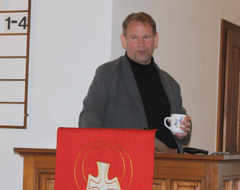Zweiter Bürgermeister Michael Wunder bei der Jahreshauptversammlung zum Thema Wegebau im Privatwald.