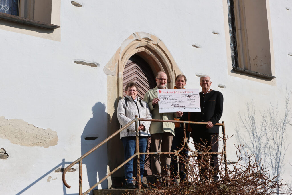 Nordhalben: Die katholische Arbeitnehmerbewegung (KAB) Nordhalben beschloss in ihrer Jahreshauptversammlung in der vergangenen Woche eine Spende von 1.000 Euro für die anstehende Sanierung der Marienkapelle. Ilse Dauer legte im Namen der KAB Handarbeitsgruppe aus ihren Erlösen des letzten Basars noch einmal 200 Euro dazu. Vom Team der KAB überreichten Manfred Köstner und Regina Wunder die Gesamtspende in Höhe von 1.200 Euro an Stiftungsratsvorsitzenden Hans Blinzler. „Wenn wir die Nordhalbener oder auch die ehemaligen fortgezogenen Nordhalbener fragen, welches Gebäude stellvertretend für ihre Heimat steht, wäre die Marienkapelle die erste Nennung überhaupt“, meinte Manfred Köstner bei der Spendenübergabe. Der habe als KAB-Teammitglied deshalb vorgeschlagen die dringend notwendige Sanierung seitens der KAB zu unterstützen. Dass die Unterstützung für dieses Gotteshaus auch von den KAB Mitglieder so gesehen wird, zeigt der einstimmige Beschluss. Der Vorsitzende des Stiftungsrates der neu gegründeten Stiftung Heimat Nordhalben Hans Blinzler dankte für die erneute großzügige Spende. Zweiter Bürgermeister Michael Wunder freute sich, dass man weiteres Zeichen setzt, damit dieses im gemeindlichen Besitz befindliche Schmuckstück erhalten bleibt.