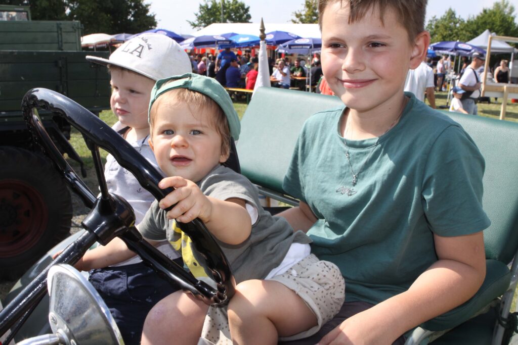 Alle Kinder zusammen sind nur einen Bruchteil so alt, wie das Bauernauto von Otto Schnapp aus Marktgraitz. Der ehemalige Berufsschullehrer stellte seinen Hanomag zur Schau in Schmölz. Foto: Michael Wunder
