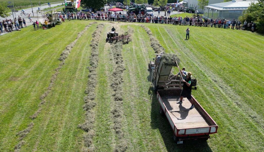 Schmölz: In ein Mekka für Traktorenthusiasten und Oldtimer-Liebhaber verwandelte sich das vergangene Wochenende der Küpser Ortsteil Schmölz. Bei dem Traktortreffen der heimischen Schlepperfreunde zeigte man auch ein Stück lebendige Geschichte des ländlichen Lebens. Matthias Bauer, der Vorsitzende des Vereins bezeichnete es als lebendiges erhalten der historischen Landwirtschaft, das oberste Ziel seines Vereins. Bei besten Festwetter zog das überörtliche Traktortreffen auf dem Gelände der Julius Zöllner GmbH landkreisüberschreitend zahlreiche Besucher aus der gesamten Region an. Die Teilnehmer, wie auch die vielen Gäste nutzten die Gelegenheit eine beeindruckende Sammlung historischer Landmaschinen zu bewundern. Vorsitzender Matthias Bauer berichtete von einen großen organisatorischen Aufwand dieses Fest mit Vorführungen auf die Beine zu stellen. Rund eine Woche wurde im Vorfeld gewerkelt, damit am Wochenende alles reibungslos über die Bühne gehen konnte. Es sollte zum 15-jährigen Bestehen der Schlepperfreunde Schmölz auch ein Ersatz für das im Jahr 2020 wegen Corona ausgefallene zehnjährige Jubiläum sein, sagte der Vorsitzende. Am Sonntag waren allein 50 Helfer im Einsatz. Rund 180 Fahrzeuge vom Baujahr 1939 bis zu aktuellen Maschinen von verschiedenen Herstellern wurden den Gästen gezeigt. Für viele Liebhaber der alten Geräte war es ein besonderes Erlebnis, diese historischen Fahrzeuge in Aktion zu sehen und mehr über ihre Geschichte zu erfahren. Ein weiteres Highlight waren die Vorführungen auf dem Feld am Sonntagnachmittag. Auf der eigens aufgebauten Fläche zeigten die Vereinsmitglieder traditionelle Techniken wie früher Landwirtschaft mit historischen Geräten und viel Handarbeit betrieben wurde. Diese teilweise für den Menschen sehr harten Arbeiten kann die junge Generation mit den heutigen modernen Maschinen kaum mehr nachvollziehen. Mit diesem weiteren Event der Traktorfreunde hat man erneut bewiesen, dass auch kleine Orte große Veranstaltungen auf die Beine stellen können, voller Nostalgie, Gemeinschaftssinn und landwirtschaftlicher Tradition. Auch für die jüngsten Besucher war mit einer Strohrutsche und dem Spielmobil des Landkreises was geboten.