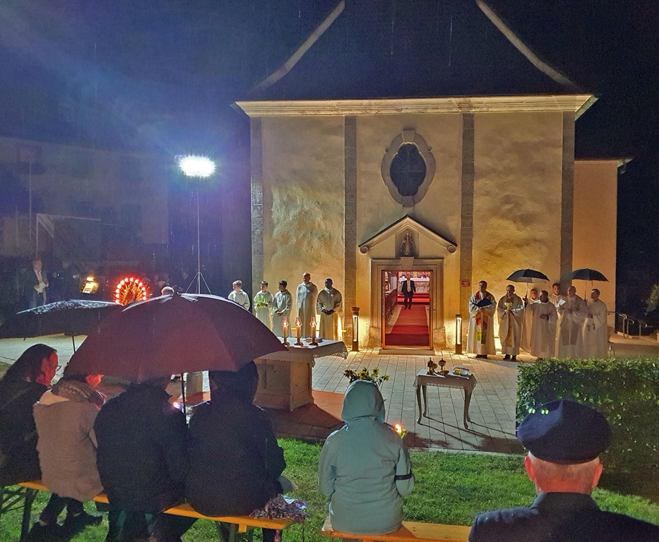 Vor dem Gotteshaus in Neuengrün war der Altar aufgebaut, Pfarrer Norbert Jung war heuer bei der 77. Friedenswallfahrt der Festprediger und feierte mit mehreren Geistlichen die Eucharistie. Foto: Harald Ulbrich