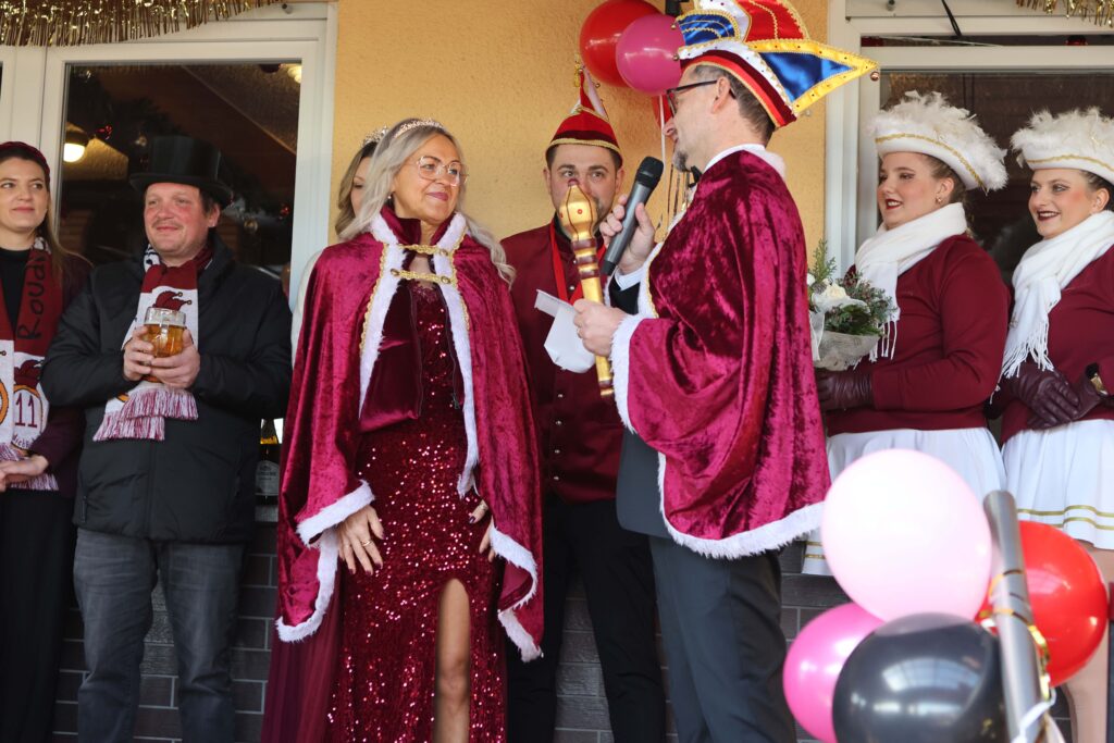 Marktrodach: Roudich! Zwick Ou! hieß es mehrmals beim diesjährigen Sportheimsturm. Aufgrund der beengten Verhältnisse im Rathaus führt man stattdessen seit drei Jahren die Veranstaltung am Sportheim durch. Gekonnt führte dabei „Elferratspräsident“ Martin Müller durchs Programm. Mit der Kindergarde Lauf, den Minis, der Jugendgarde und der Rubingarde hatte man gleich vier die feiern, Party machen und es haben lassen krachen. Vorgestellt wurden als neue Elferräte der Großvichtacher Kulturwächter Tobias Ernst und Hannes Wich-Heiter. Neben den Bürgermeister Nobbi wurden auch die beiden Bürgermeisterkandidaten Thomas Hümmrich und Katja Wich aufs Korn genommen. Sie kündigten an, falls die Faschingsnarren das Sagen im Rathaus haben, dass sie als erstes schrauben ganz munter diese Hallenmiete runter. Dann führn sie ein, nach kurzer Zeit, a Steuer für die Traurigkeit. Nach der Abschiedsrede des letzten Prinzenpaars Philipp I und Theresa I fand die Übergabe an das neue Prinzenpaar Daniela I und Thomas I statt. Beide versprachen: Gemeinsam lenken wir durch diese Zeit, mit Spaß, Freude und Heiterkeit. Mit Krone, Charme und Frohsinn pur, sind wir bereit für jede Tour!