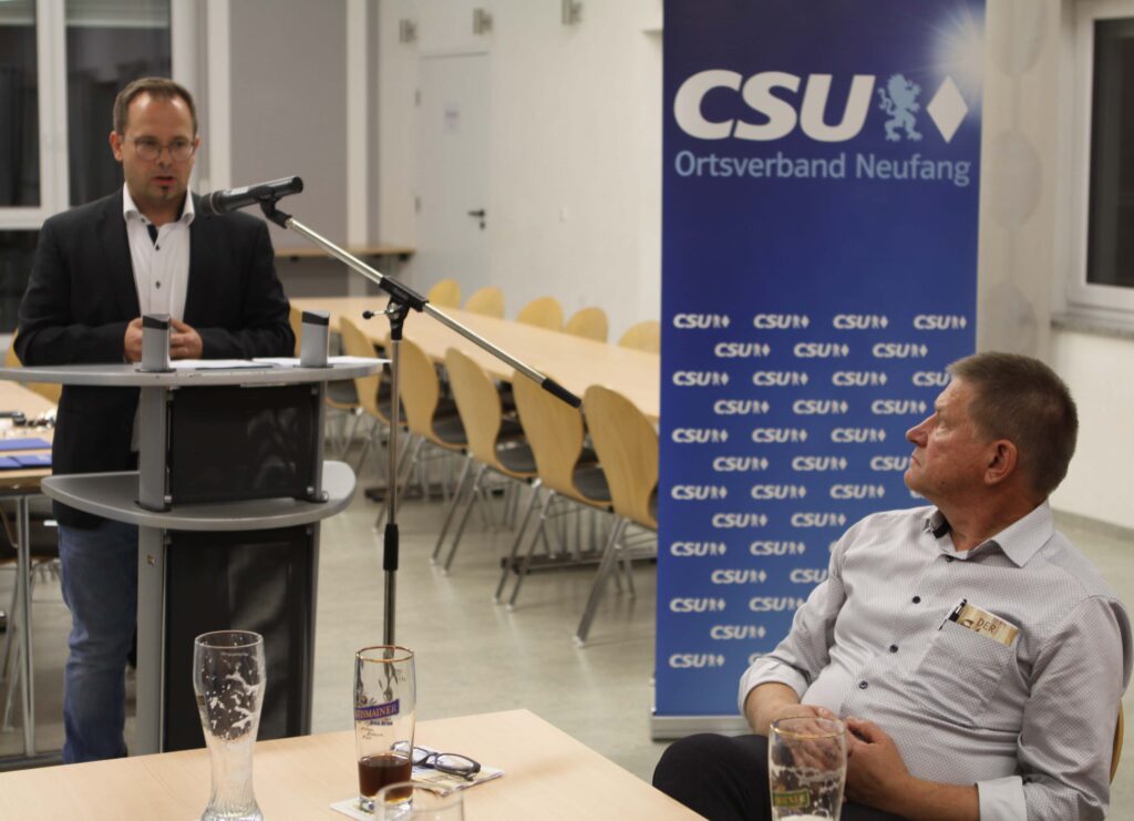 Neufang: Er hat ja gesagt, gemeint ist Sven Schuster der in Steinwiesen für die CSU als Bürgermeister kandidieren möchte. Am Samstag hat er sich bei der CSU Neufang/Birnbaum, den größten der drei Ortsverbände vorgestellt und überzeugte die Anwesenden. Die gemeinsame Nominierungsversammlung findet dann, nach einer weiteren Vorstellung am kommenden Wochenende in Nurn, am 25. Oktober wieder im Sportheim in Neufang statt. Zu Beginn räumte Schuster mit seiner SPD-Vergangenheit offen und ehrlich abschließend auf. Der derzeitige geschäftsleitende Beamte der Verwaltungsgemeinschaft Teuschnitz ist höchst motiviert, ein guter Kümmerer für die Bürgerinnen und Bürger des Marktes Steinwiesens zu werden. Der 39-jährige Dipl. Verwaltungswirt (FH) war früher bei der Deutschen Rentenversicherung Nordbayern, wechselte dann ins Rathaus nach Nordhalben und 2019 als Geschäftsstellenleiter nach Teuschnitz. Dort wurden in der Vergangenheit neben den Stadtumbau und die Transformation zur Arnikastadt millionenschwere Investitionen im Bereich Wasser/Abwasser getätigt. Auch für die Gemeinden Tschirn und Reichenbach ist Schuster zuständig. Als Bürgermeister sieht er sich vor allem in den Pflichtaufgaben gefordert. Es müsse eine gezielte Investitionsoffensive im Bereich des Kanals und Wasserleitung gestartet werden, um im Genuss von Fördermitteln zu kommen, was wiederum den Gebührenzahlern zugutekommt. Ab 2027 soll jährlich eine Straße im Vollausbau angegangen werden, so Schuster. Nicht aus den Augen zu verlieren sind die vielen Brückenbauwerke. Als weiteren Schwerpunkt nannte er die Ortsplanung, die Schaffung von Bauland für Bauwillige und den kommunalen Wohnungsbau. Der Stadtumbau und die Neuordnung und Strukturierung der Ortsmitte Steinwiesens stehen auf der Agenda. Zudem gilt es, die Nahversorgung zu sichern und zu stärken. In der kommenden Legislaturperiode stehe die umfangreiche Sanierung des Freibades an. Neu aufzustellen, gilt es den Bauhof. Er möchte ein Bürgermeister für alle Generationen sein und deren Belange ernst nehmen. Sein Ziel sei es die lebens- und liebenswerte Großgemeinde mit ihrer wunderbaren Vielfalt zu erhalten und weiterentwickeln. Eingangs der gut besuchten und harmonisch verlaufenden Versammlung ging Ortsvorsitzender Rudolf Kotschenreuther auf die durchgeführte Mitgliederbefragung ein. Von der 88 Mitgliedern hätten 58 teilgenommen, über die Hälfte hätte für Sven Schuster plädiert. Er hat neben seiner Erfahrung und der Fachkenntnis aus der Verwaltung auch gute politische Drähte. Es sei an der Zeit für einen Wechsel, wobei er den bisherigen Bürgermeister Gerhard Wunder für seine Arbeit ausdrücklich lobte. Insgesamt sei die CSU in Steinwiesen in den letzten Jahrzehnten die politisch treibende Kraft gewesen. Seitens des Ortsverbandes Neufang gelte es die scheidenden Gemeinderäte Thomas Reißig und Udo Trebes zu ersetzten. Man wird mit folgenden Kandidaten auf der Liste vertreten sein: Rudolf Kotschenreuther (2. Platz), Günter Partheymüller (Birnbaum) (6. Platz), Christoph Müller (8. Platz) und Marco Kotschenreuther (12.Platz). Der 14. Platz und der Kreistagsplatz wird bei der Nominierung bekannt gegeben. Im Weiteren wurden Ehrungen langjähriger Mitglieder durchgeführt. Wie der Vorsitzende sagte, seien die Geehrten immer eine Stütze des Ortsverbandes gewesen und haben diesen geprägt. Für 60 Jahre Mitgliedschaft wurde Franz Föhrkolb ausgezeichnet. Bereits seit 50 Jahren gehören Pankratz Reißig, Heinrich Reißig, Werner Brehm, Heinrich Föhrweiser, Alois Göppner und Elmar Müller den CSU Ortsverband Neufang an. Für 40- jährige Mitgliedschaft wurde 3. Bürgermeister Thomas Reißig ausgezeichnet.